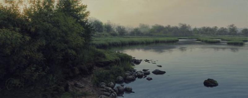 able to harness this calming aesthetic, creating paintings that convey his own